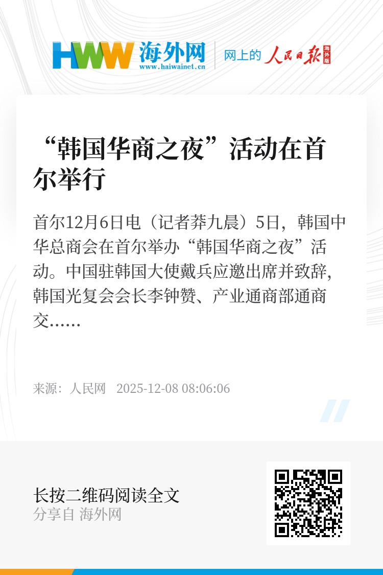 戴兵强调,中国高质量发展将为中韩合作、亚太繁荣、全球共同发展开辟更加广阔的空间。戴兵表示,旅韩华侨华人为促进韩国经济社会发展和中韩互利合作作出重要贡献,希望广大侨胞发挥联通中韩独特优势,做中华文化的传播者、中国故事的讲述者、中韩友好的助推者。