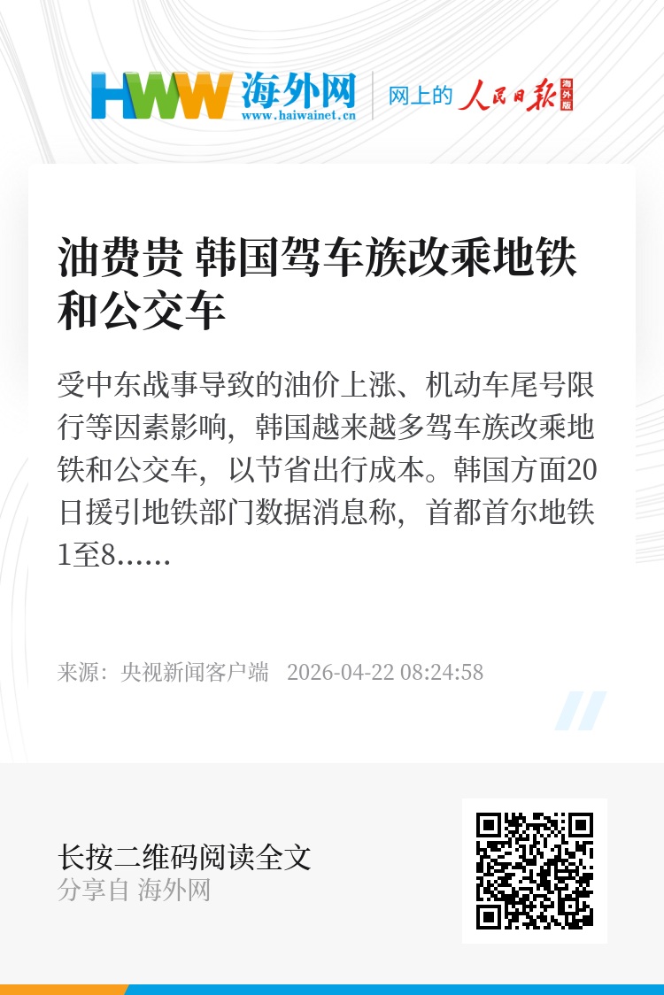 受中东战事导致的油价上涨、机动车尾号限行等因素影响,韩国越来越多驾车族改乘地铁和公交车,以节省出行成本。